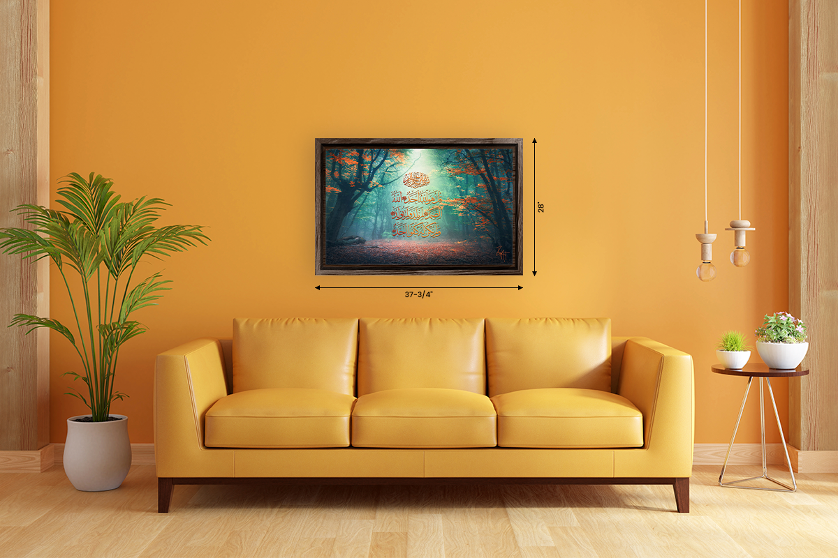 This picturesque composition harmonizes the beauty of nature's orange hues with the spiritual depth of Surah Al-Ikhlas. It evokes a sense of peace and reverence, symbolizing the unity of creation and the eternal message of monotheism encapsulated in the Quranic verse.